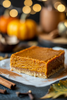 All the cozy pumpkin pie flavor without turning on your oven. These bars have a nut-and-date crust and a creamy pumpkin filling that’s naturally sweetened and spiced to perfection. Pumpkin is packed with vitamin A and fiber, and when you make the filling with coconut cream or cashews, you get that silky texture without the heavy cream. They’re easy to slice and serve, and they taste just like the real thing.