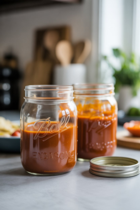 Once the sauce is finished, divide it into thirds. I put two-thirds into mason jars to Store to use later and use the remaining third in my dish. This sauce freezes very well and reheats easily, making it great for meal prep. Having a jar ready in the freezer makes enchiladas, rice bowls, or baked chicken come together quickly on busy nights. ( these freezer containers make it easy)